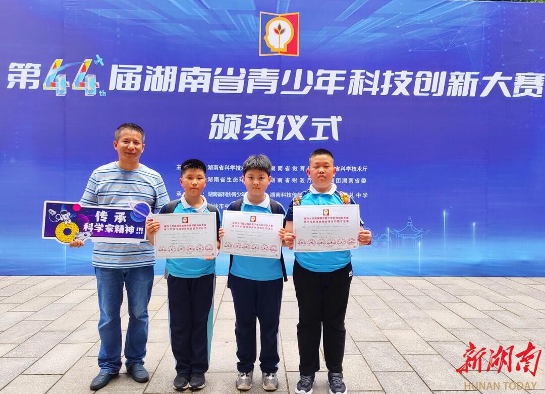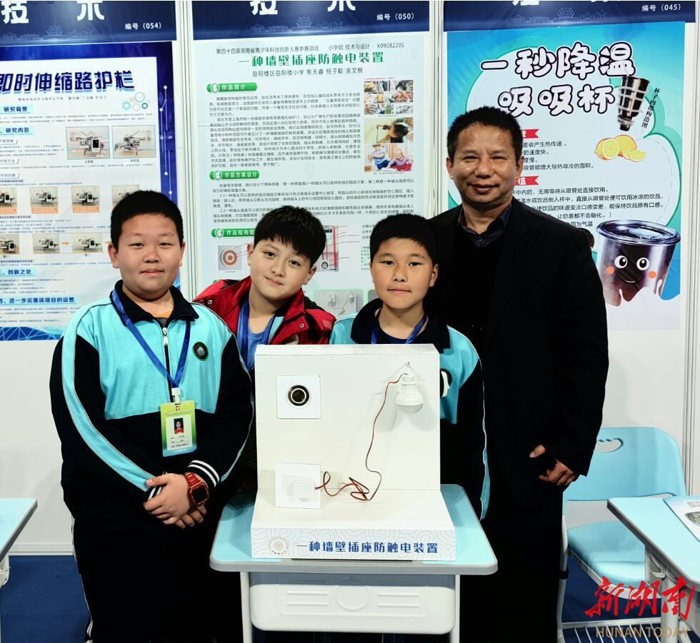 湖南日报·新湖南客户端5月28日讯(记者 徐典波 通讯员 曹晖 )5月27日,第44届湖南省青少年科技创新大赛揭晓。岳阳市岳阳楼区岳阳楼小学学生熊天睿、杨子毅、张致远创新作品《一种墙壁插座防触电装置》,从全省14个市州推荐860个作品中脱颖而出,荣获科技创新成果一等奖。