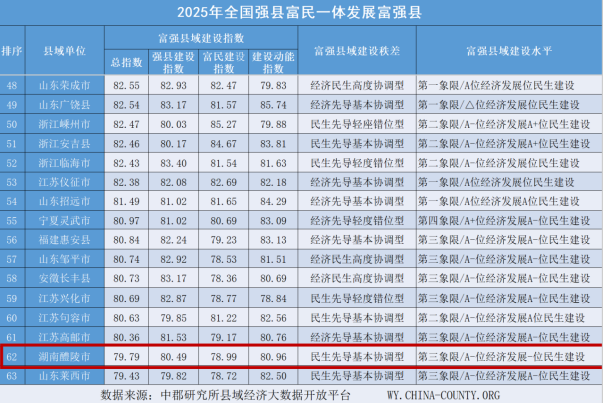 据悉,该榜单评选标准严苛,入选县域需同时满足“富强兼备”和“一体发展”两大条件,即强县建设与富民建设指数均位居全国前列,且发展具备良好协调性。此次上榜,是对醴陵市践行“强县”与“富民”协同发展理念、推动县域经济高质量发展的有力肯定,标志着其在全国县域竞争新格局中占据了重要一席。