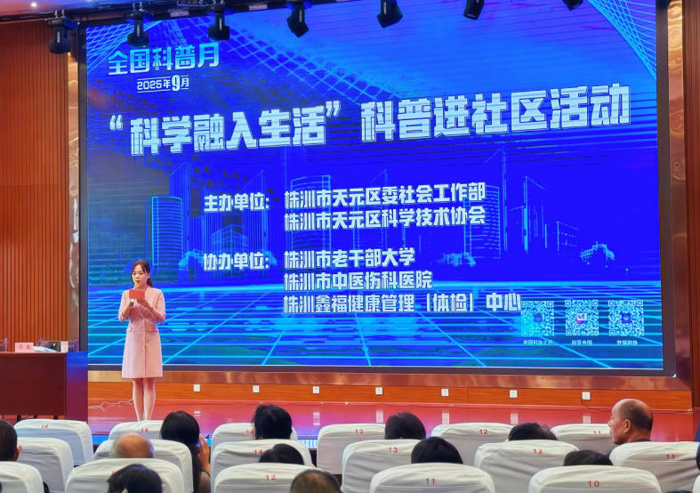 湖南之窗株洲讯(通讯员 陈舟)9月26日下午,由株洲市天元区委社会工作部、区科学技术协会主办,株洲市老干部大学、中医伤科医院、鑫福健康管理(体检)中心协办的“科学融入生活”科普进社区活动在株洲市老干部修养管理活动中心成功举行。活动特邀中国科学院老科学家科普演讲团副团长石磊教授主讲,吸引了260余名社区居民和志愿者参与。